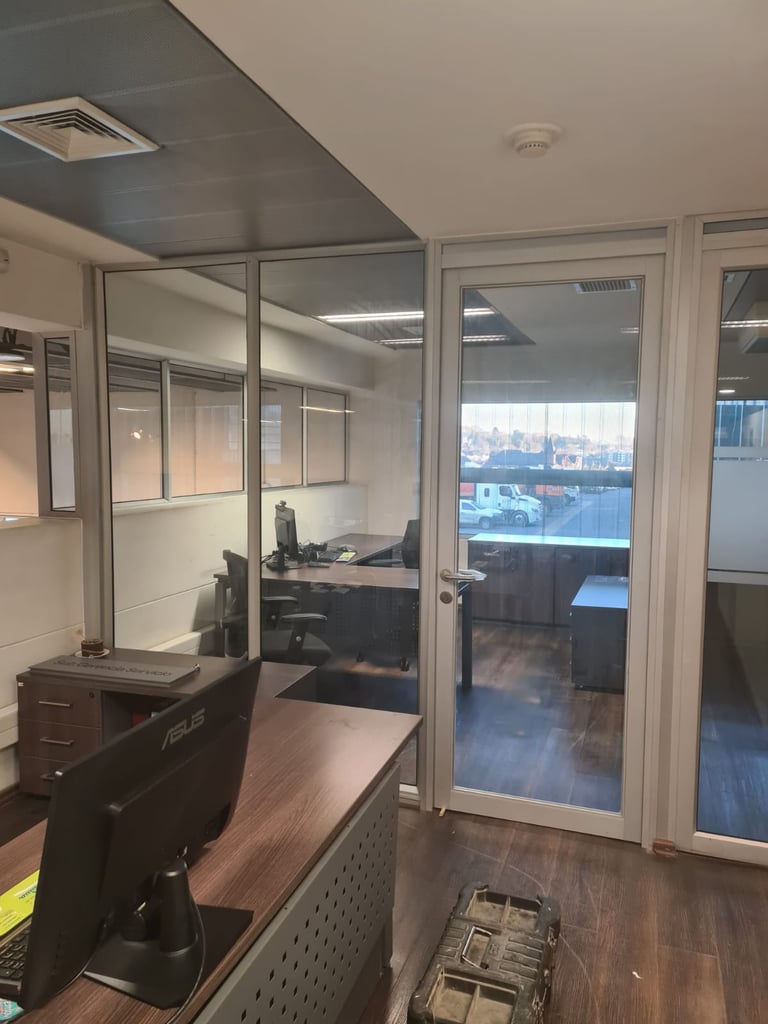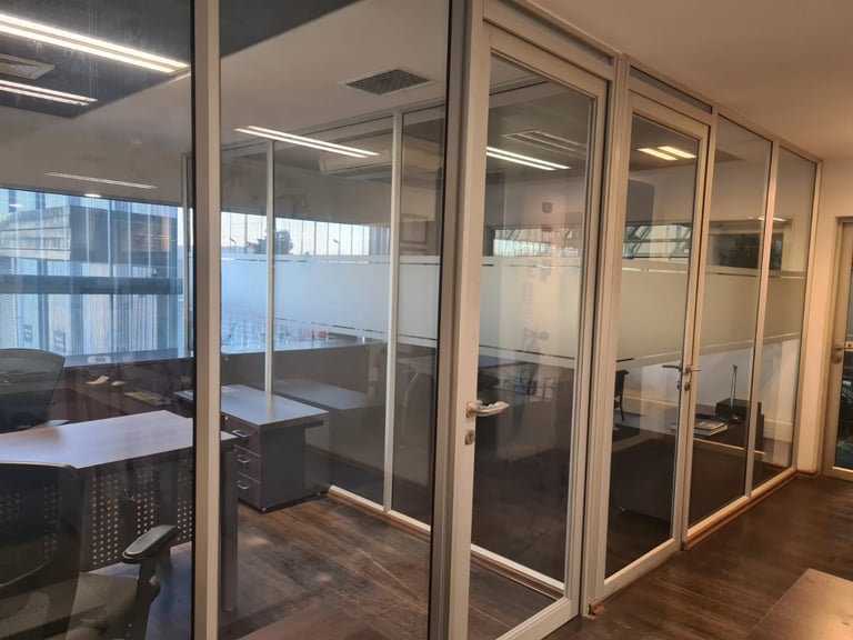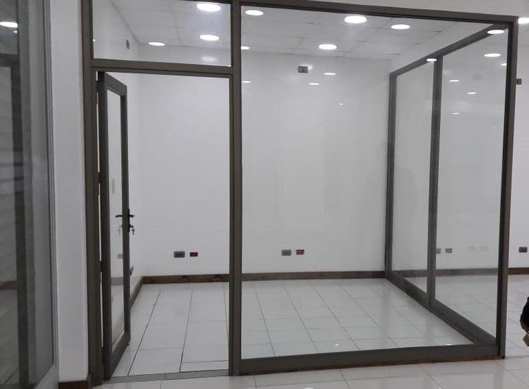 Diseño e instalo boxes divisorios de aluminio y vidrio a medida, perfectos para oficinas, salas de reuniones, consultorios u otros espacios que necesiten privacidad sin perder luz ni amplitud visual.