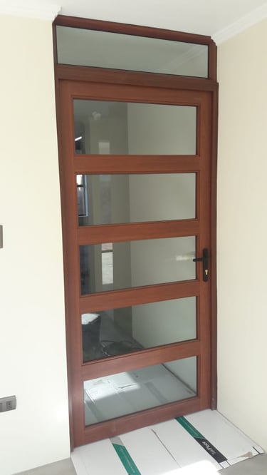 Cada puerta la diseño según el espacio y el gusto del cliente: ya sea para interiores o exteriores, abatibles o corredizas, simples o dobles. Me preocupo de que queden firmes, bien selladas y con terminaciones prolijas, manteniendo siempre un look moderno y elegante.